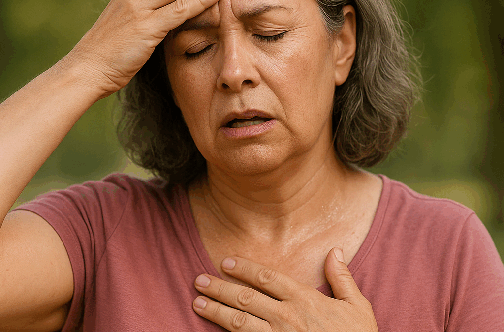 - Ondas de calor (fogachos) – sensação súbita de calor intenso, que pode vir acompanhada de suor e vermelhidão no rosto.